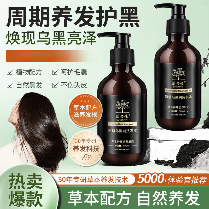 ¥54.9 欧品佳何首乌洗发水中草药本养发液无硅油滋养蓬松男女士 何首乌洗发液500ml*2瓶 59.9