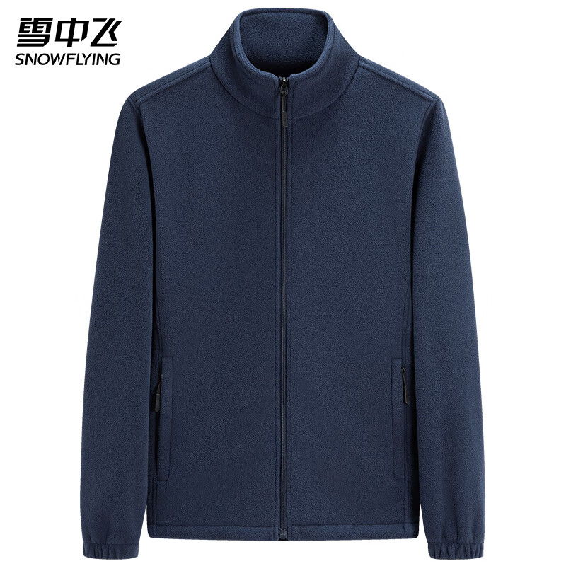 ¥59 雪中飞秋冬情侣抓绒开衫外套户外摇粒绒男士休闲立领夹克上衣款 蓝色 2XL 159