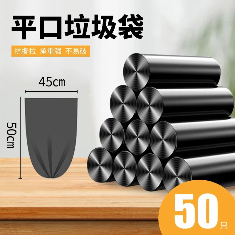 ¥8 垃圾袋家用手提式加厚黑色平口式厨房卫生间塑料清洁袋宿舍装 平口款【50只】45*50cm 38