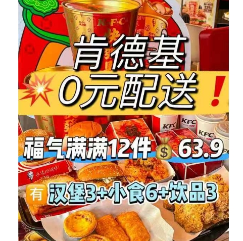 【今日免配】63.9元!肯德基 福气满满畅选桶12件