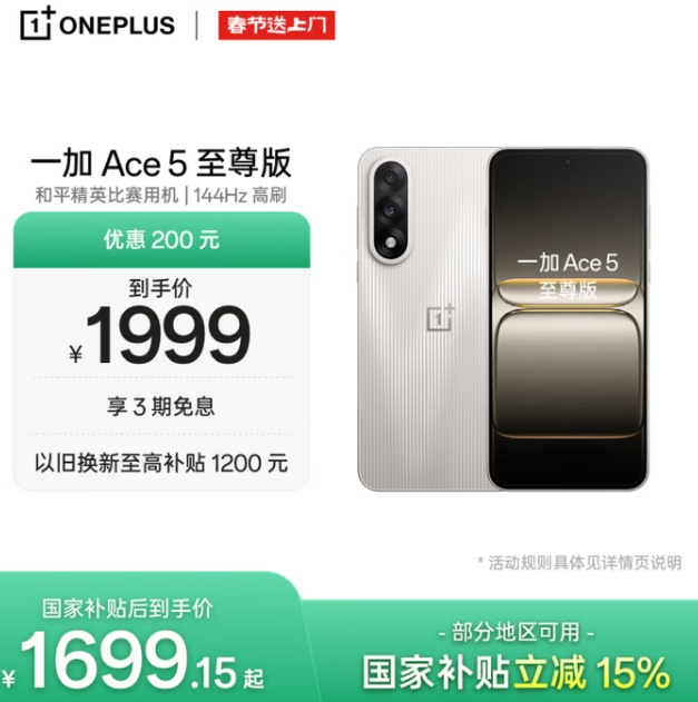 1699元!一加 Ace 5 至尊版 手机 12GB+256GB 燃力钛