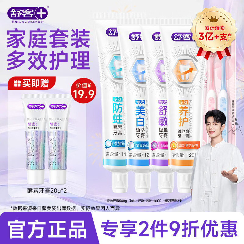 舒客专效牙膏套装4支+2牙刷,到手仅29.9元
