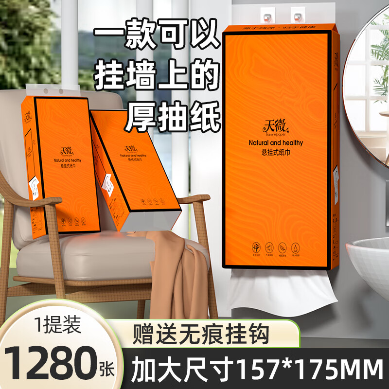¥55.9 天微【优选百货】悬挂式抽纸大包家用厨房纸巾擦手面巾纸纸抽底 4层1280张6提 85.9