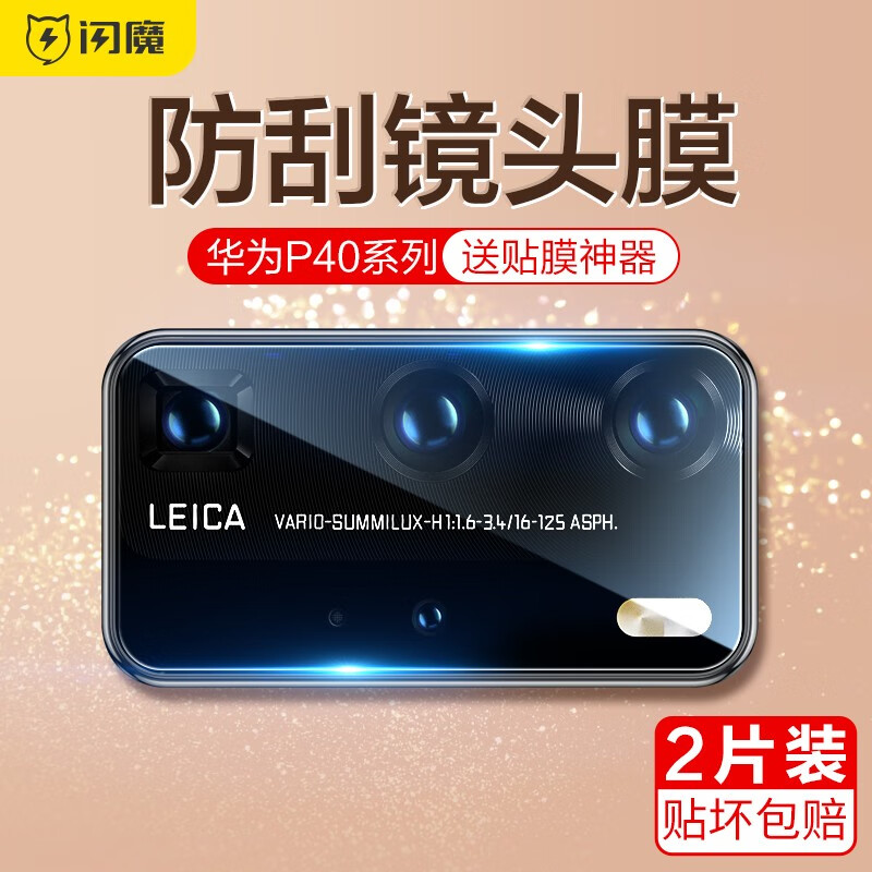 ¥38.9 闪魔【甄选厂家】 适用于华为p40/p40pro镜头膜摄像头保护膜高清全面 华为p40pro【镜头膜防爆】2片装 全面保护 68.9