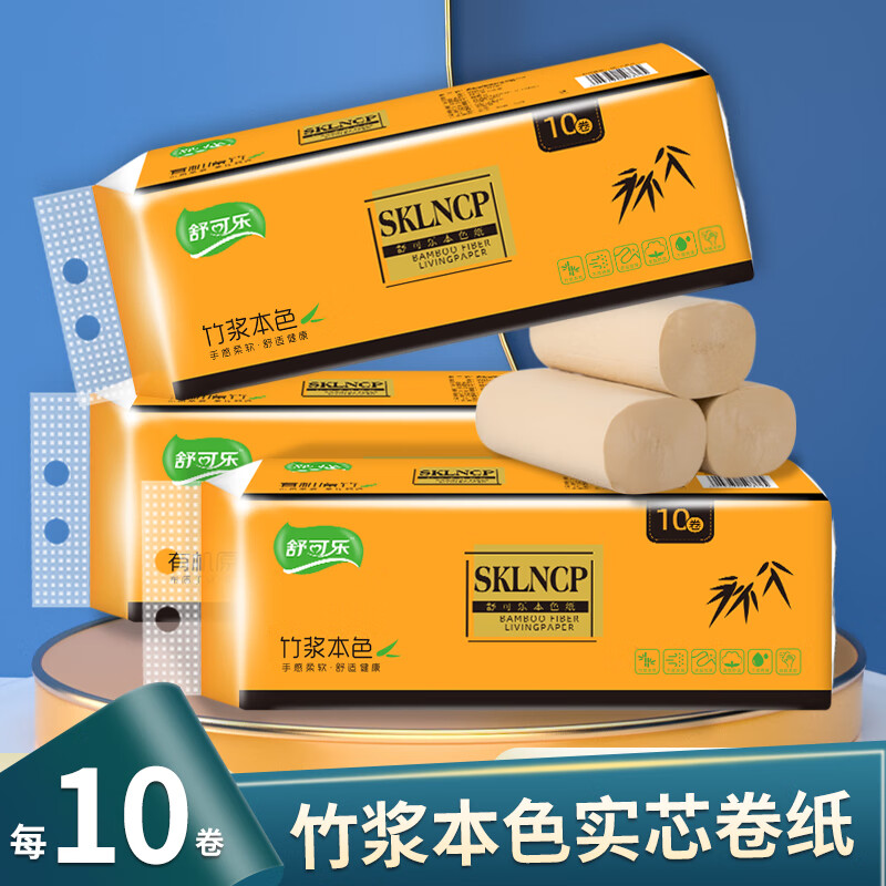 ¥14.9 舒可乐【已验货】 卫生纸巾卷纸无芯家用竹浆卷筒纸手纸厕纸 1提10卷 44.9