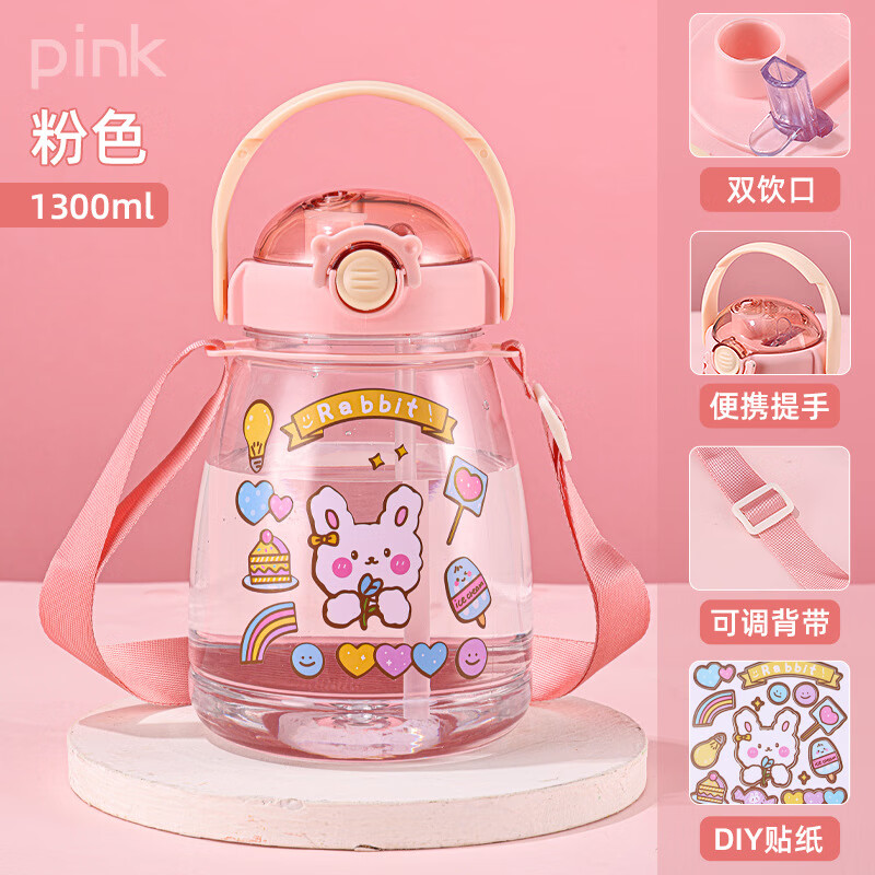 ¥24.6 天诺大肚杯水杯男女大容量带吸管便携夏季手机支架塑料杯 锁扣大肚杯粉色 锁扣大肚杯粉色 1300ML 54.6