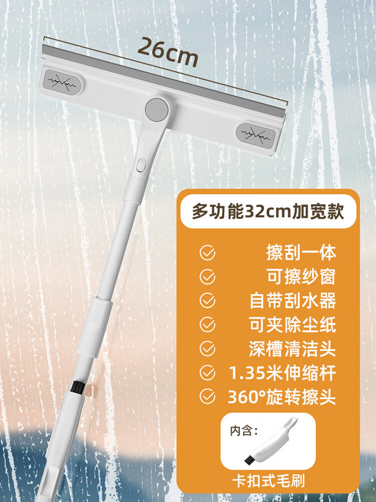 ¥28.9 新款喷水玻璃刮水器保洁家政专用清洁工具洗窗双面擦玻璃擦窗 常规白灰款26cm含窗刷 配一布 58.9
