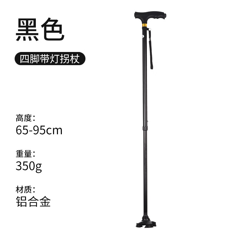 ¥66.9 拐杖老人拐棍四脚手杖铝合金老年人四角防滑伸缩调节高低带灯拐扙 黑色 96.9