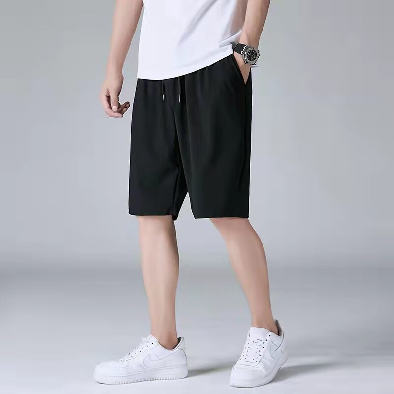 ¥25.9 运动跑步短裤透气男士五分裤沙滩裤夏季休闲宽松春季大码外穿中裤 黑色 M 55.9