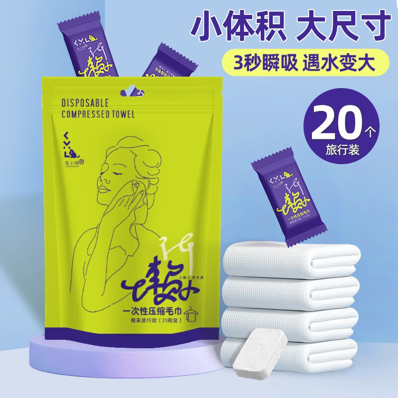 ¥15.9 陈小懒【甄选百货】一次性压缩毛巾加大加厚洗脸巾旅行便携酒店出差洁面 糖果压缩毛巾-40粒装 45.9