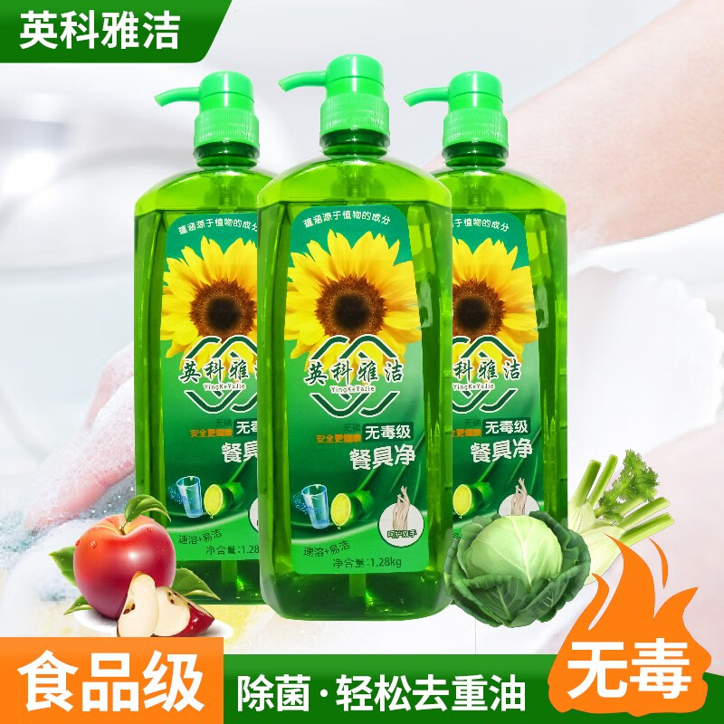 ¥31.9 英科雅洁柠檬味1.28KG洗洁精浓缩家用洗碗无磷食品级高效去油不伤手餐具净 1.28kg*2瓶 61.9