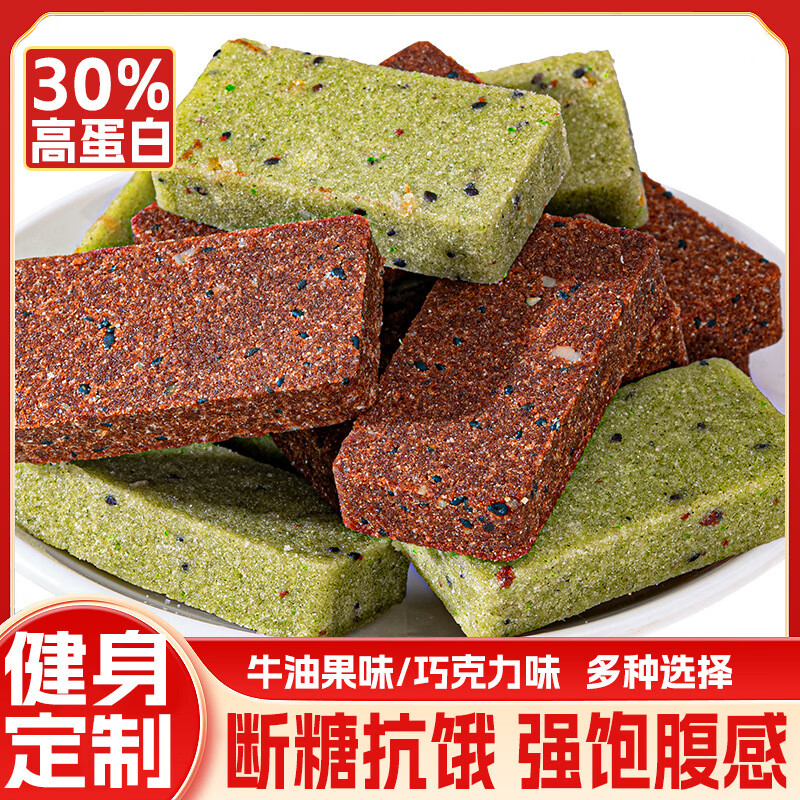 ¥23.8 七点食分蛋白棒代餐棒牛油果可可布朗尼营养饱腹高蛋白膳食纤维零食品整箱 谷物蛋白棒【混合】60包/ 750g 53.8