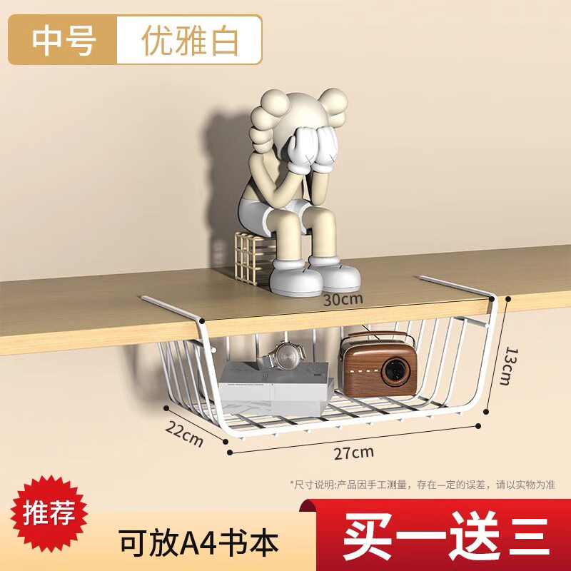¥33.9 【甄选厂家】桌下收纳架置物架宿舍挂篮好物书桌下挂衣柜分层隔板 白色中号【4个装】 63.9