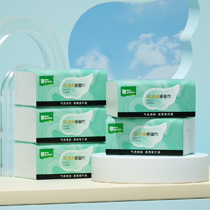 ¥12.9 雨森【好物优选】羽质柔抽纸面巾纸260张/包4层加厚餐巾纸擦手纸卫生 260张*6包 42.9
