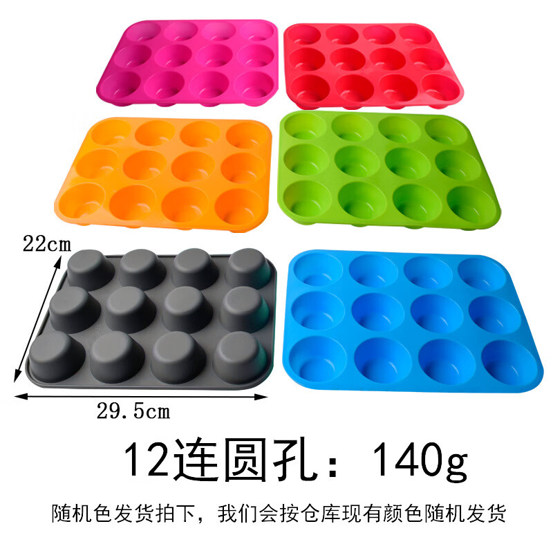 ¥20.6 24孔12格集成圆形硅胶马芬杯模具果冻布丁饼干模烤盘蛋糕烘焙模具 12连圆孔 随机色发货 50.6