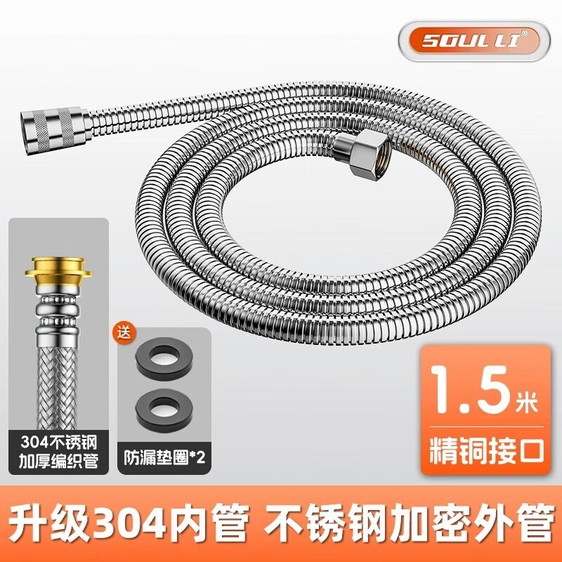 ¥17.9 304不锈钢花洒软管淋浴喷头连接管通用热水器出水管花洒配件 304花洒软管-内外不锈钢-1.5M 47.9