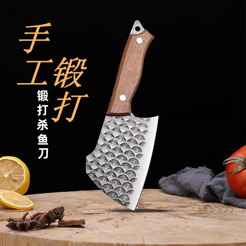 ¥17.9 手工锻打杀鱼专用刀高锰钢剖鱼开背开鱼肚超锋利专业宰鱼刀小菜刀 锻打斧形鱼头刀 47.9