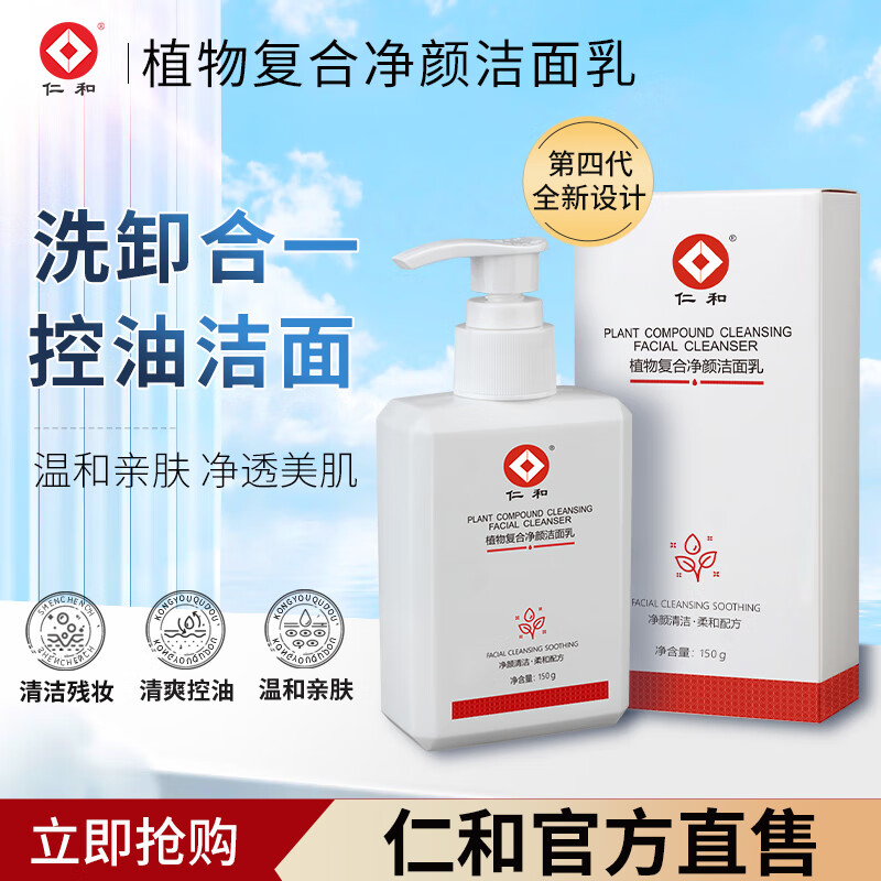 ¥9.9 仁和 植物复合净颜洁面乳深层控油深层清洁毛孔男女通用 控油清洁洁面乳1瓶 39.9