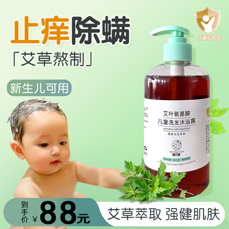 ¥177.9 施汀宣【甄选厂家】艾草儿童沐浴露3-6洗发水二合一洗发沐浴宝宝止痒沐 【3年陈艾】除螨清爽止红痒 207.9