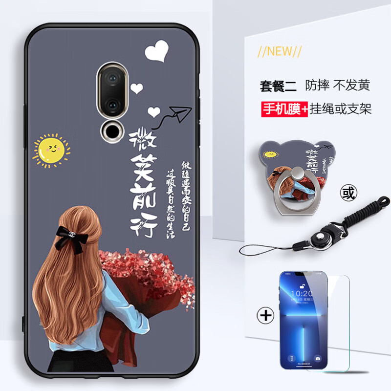 ¥13.9 美希意【甄选百货】适用魅族16plus手机壳M892Q女款16thPlus个性网红防 微笑前行+钢化膜-T2 魅族 16th Plus 43.9