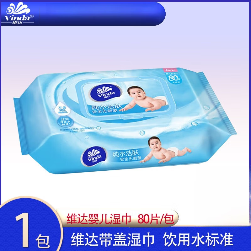 ¥20.8 维达湿巾纸纯水男女成人家用湿纸巾家庭实惠装80片大包装 80张1包 50.8