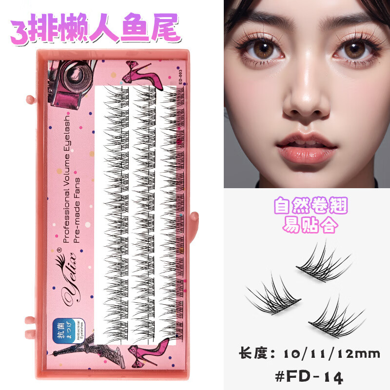 ¥21.9 睫毛漫画眼睫毛单簇自然浓密小恶魔懒人三部曲假睫毛 12mm 3排懒人鱼尾FD-14 C-0.07mm 51.9