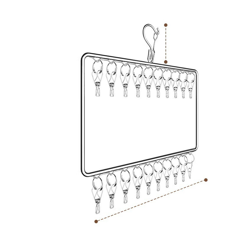 ¥32.9 袜子晾晒架多夹子晾衣架凉内衣内裤不锈钢家用阳台防风晒袜子 多层袜架:2层20夹 62.9