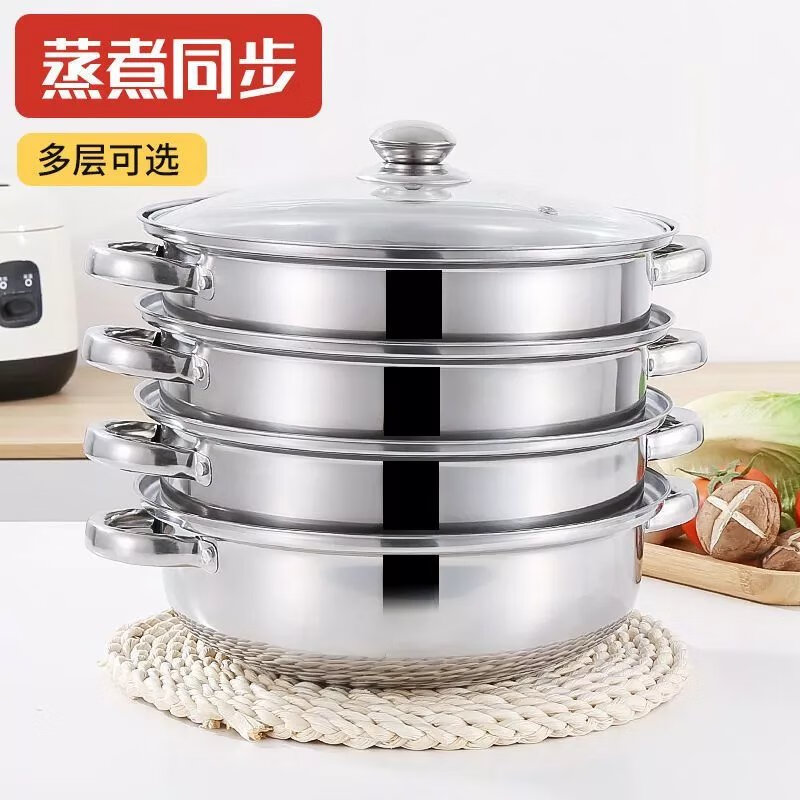 ¥74.8 多功能蒸汤锅不锈钢加厚4层3层双层火锅蒸馒头家用电磁炉锅具 28cm 加厚蒸汤锅【四层带盖】 104.8