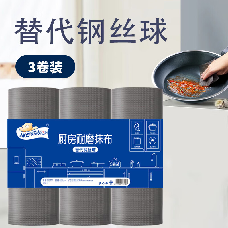 ¥20.9 加厚洗碗布-珊瑚绒抹布擦桌布百洁布厨房清洁吸水抹布 3卷【75片】 灰色一卷25片 50.9