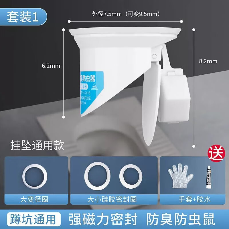 ¥40.6 【精选】厕所蹲便器堵臭器卫生间蹲坑式便池防反味大便器堵孔 一代重力款【不】 一个装【+手套+胶水】 70.6