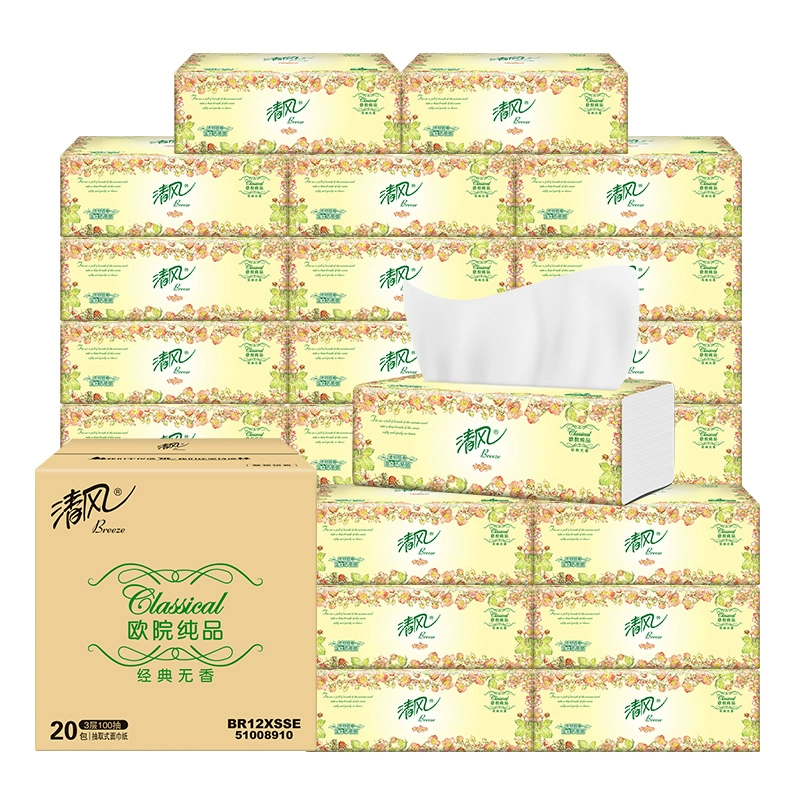 ¥18.9 清风欧院抽纸3层100抽20包面巾纸餐巾纸 19.9