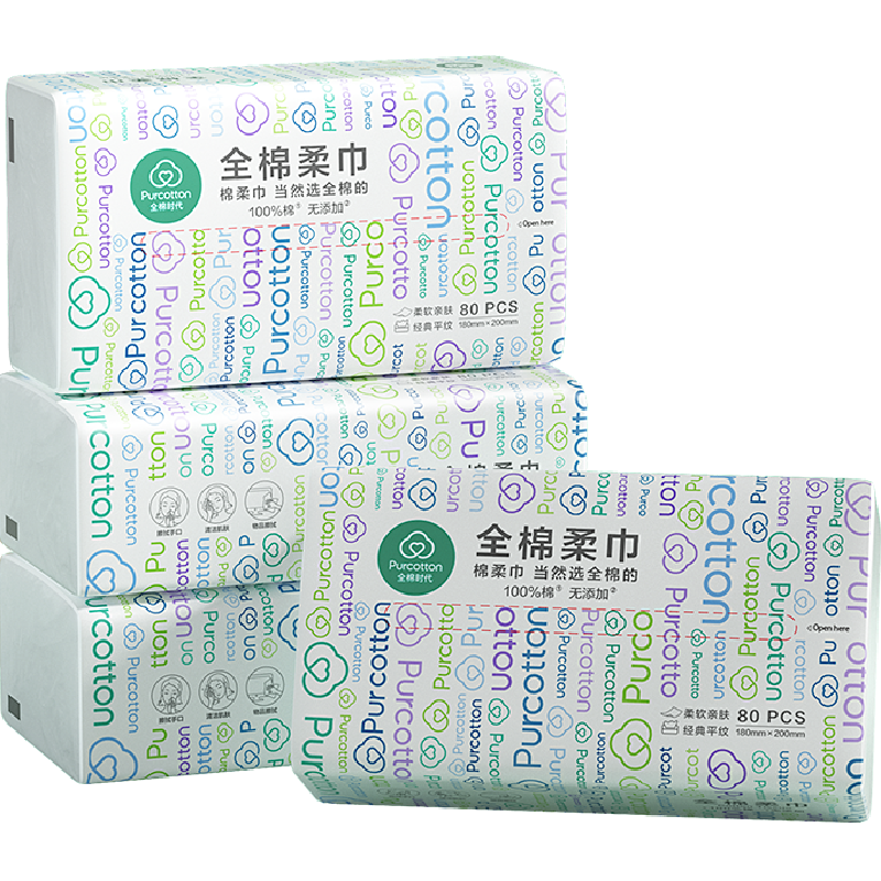 ¥31.4 全棉时代一次性洗脸巾80抽*4包 36.4