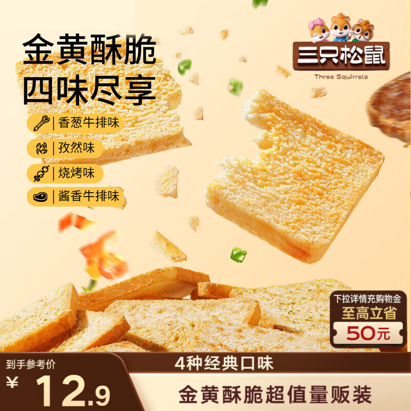 三只松鼠香烤馍片450g仅需2.9元,襄阳荆州阜阳地区面筋卷120g低至1.9元