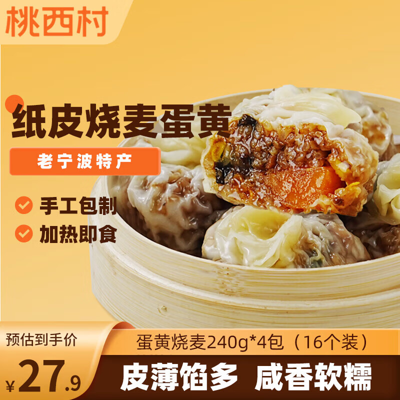 桃西村纸皮烧麦咸香蛋黄味240g*4包(16个装)8.9元
