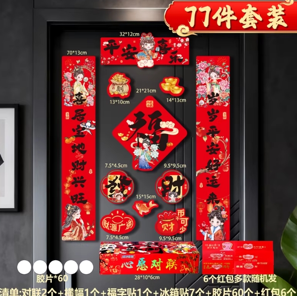 3.59元包邮!马年磁吸对联76件套!送礼盒