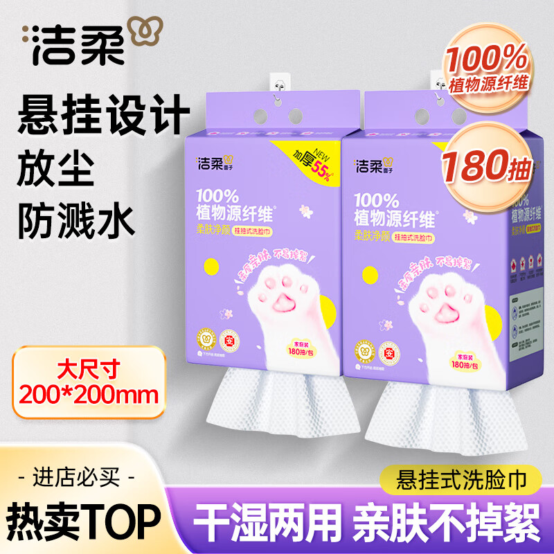 洁柔加厚绵柔巾180抽 到手仅19.9元还赠同款