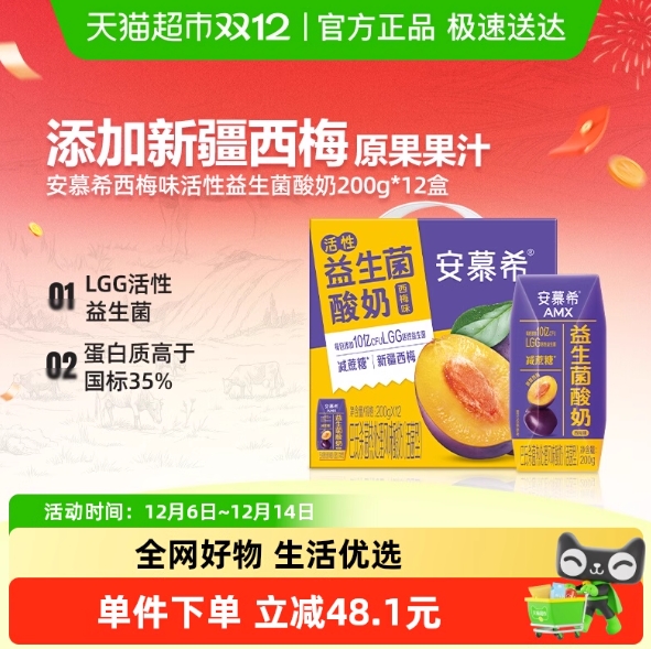 23.4元包邮!安慕希 西梅酸奶200g*12盒