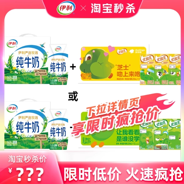 34元包邮!伊利纯牛奶➕优酸乳 共两箱24盒