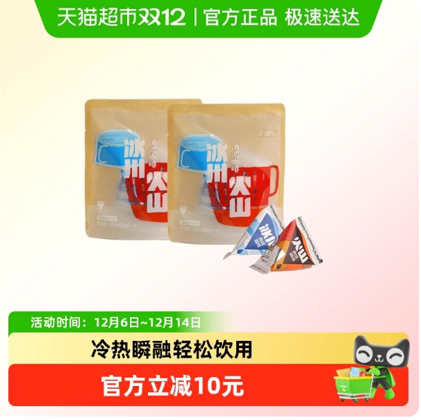 9.75元包邮!连咖啡冰川火山滴滤咖啡8杯
