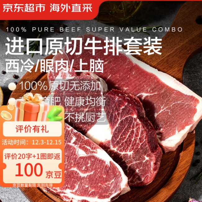 99.6元!京东超市 海外直采进口草饲牛排 3.6斤 10片
