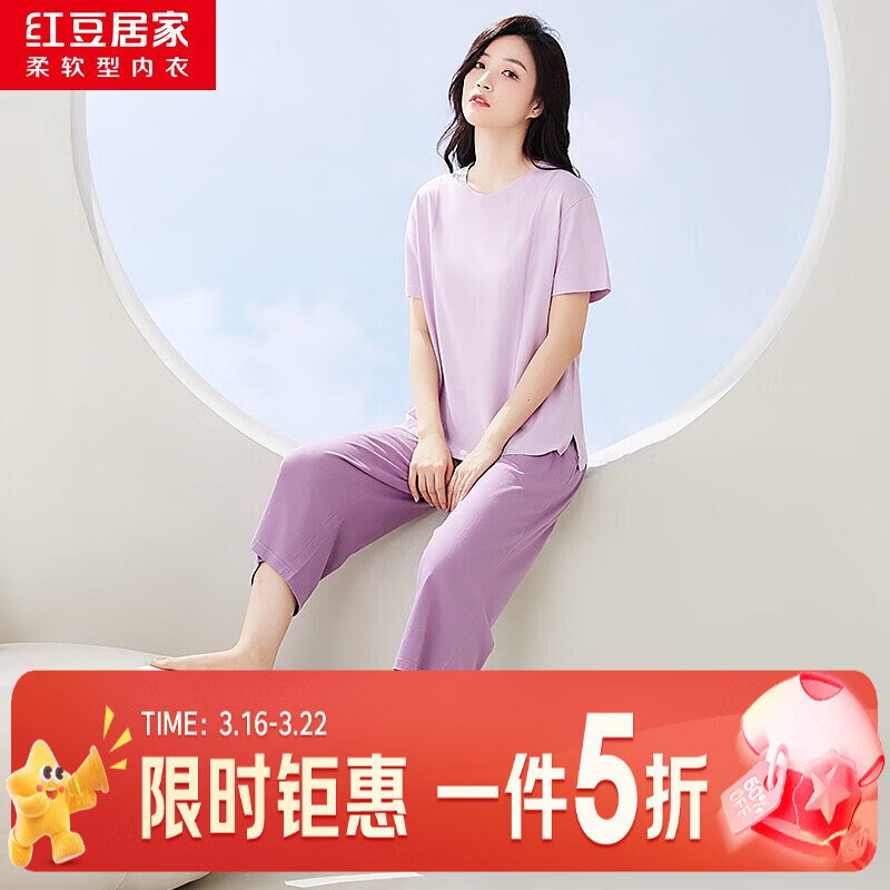 荭豆纯棉睡衣5折:女士套装低至44.9元,多款舒适家居服任选