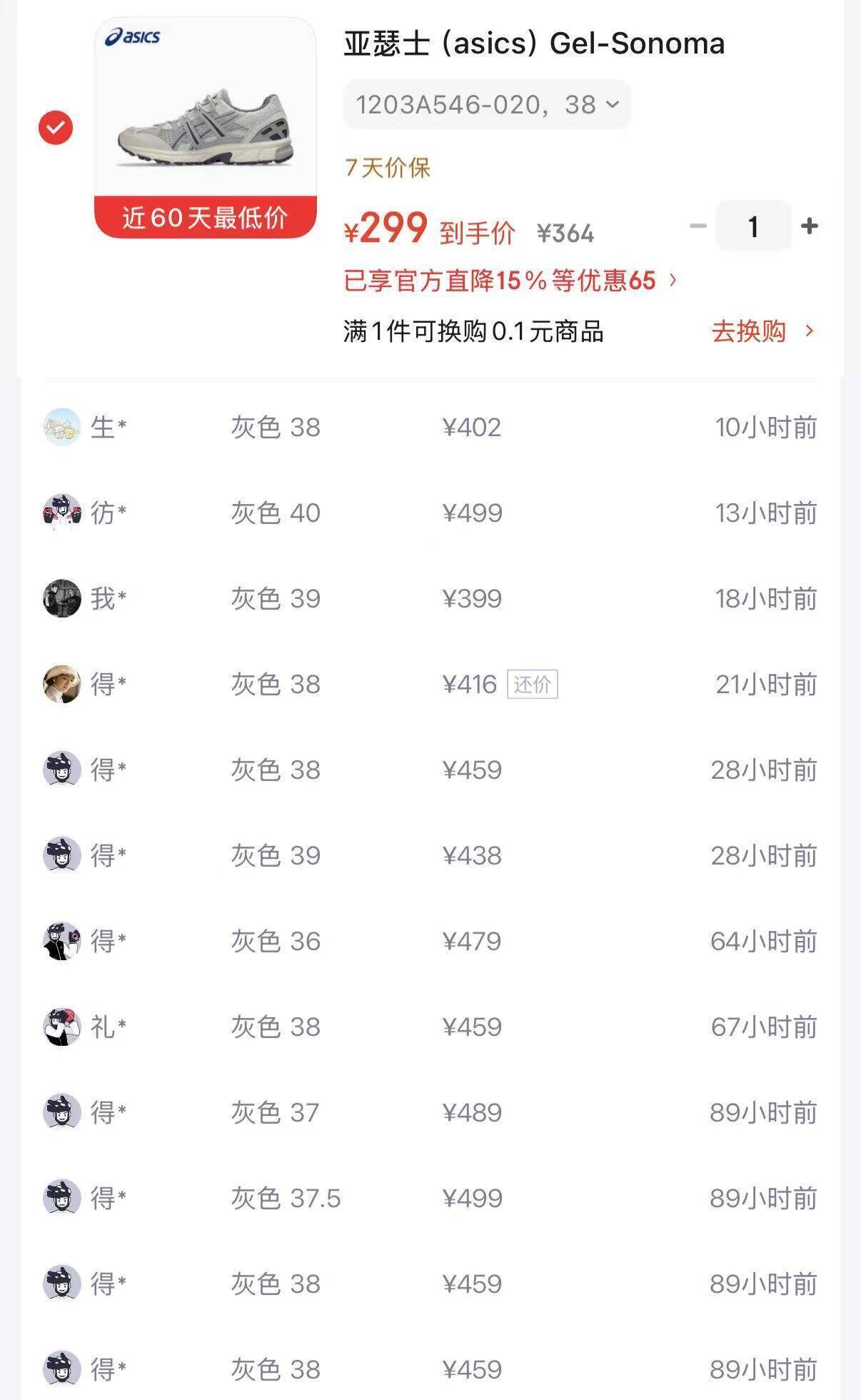 亚瑟士Sonoma跑鞋到手309元,得物价459元
