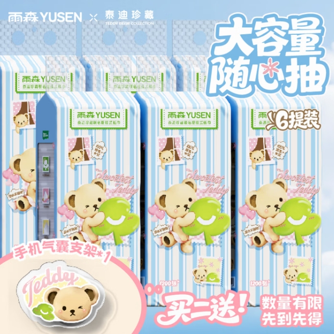 14.9元包邮!雨森联名泰迪珍藏悬挂抽纸4提