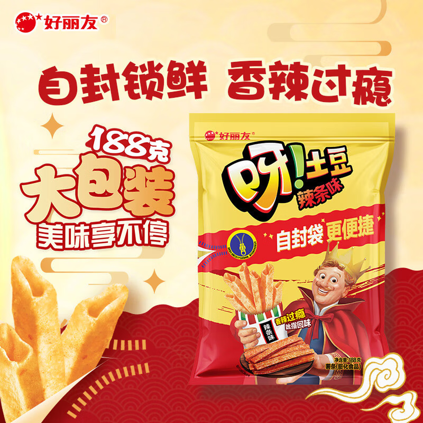 好丽友呀土豆188g大包装仅需9.9元/袋,任选4件39.6元