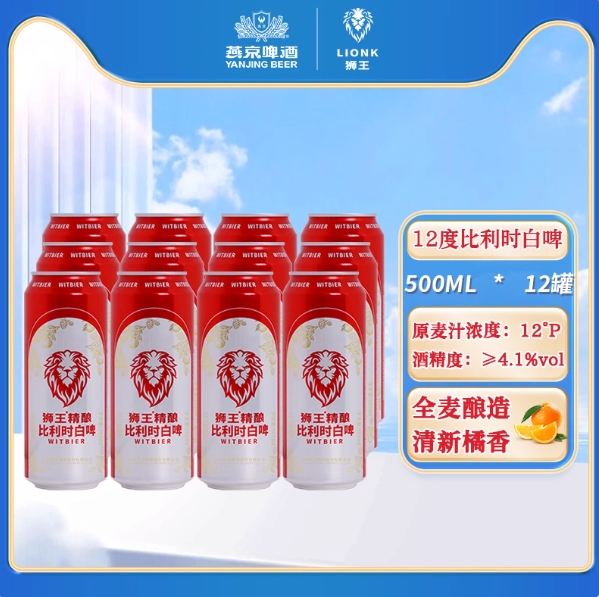34.9元包邮!燕京 狮王 精酿比利时白啤 500ml*12