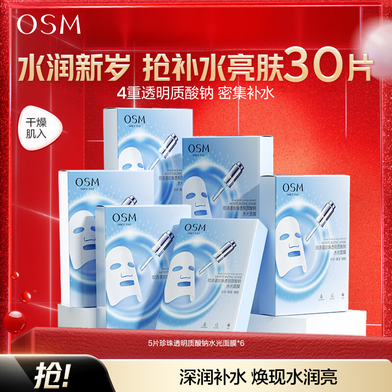 欧诗漫珍珠水光面膜30片仅33.9元!先领49减16券低至1.1元/片速抢
