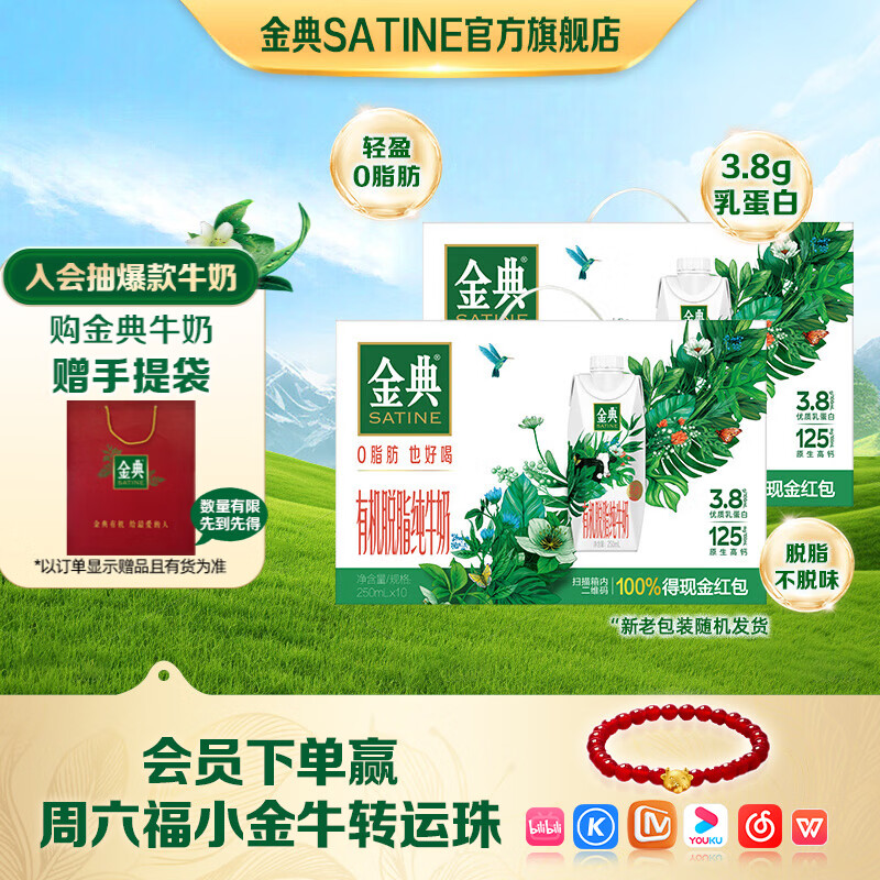【手慢无】伊利金典有机脱脂纯牛奶2箱装仅85元!超值年货礼盒限时抢