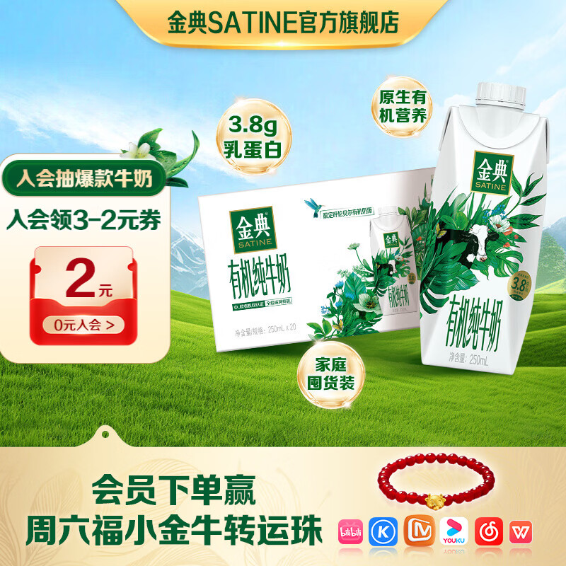 【年货特惠】伊利金典有机纯牛奶250ml*20盒 仅69.6元!折3.4元/盒