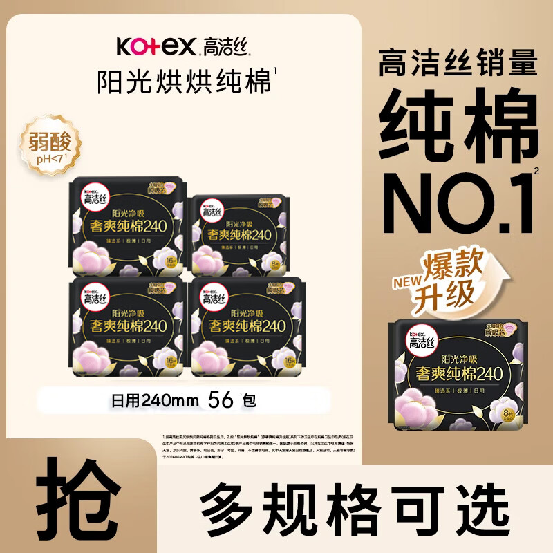 高洁丝奢爽纯棉卫生巾240mm*56片 到手价30.9元