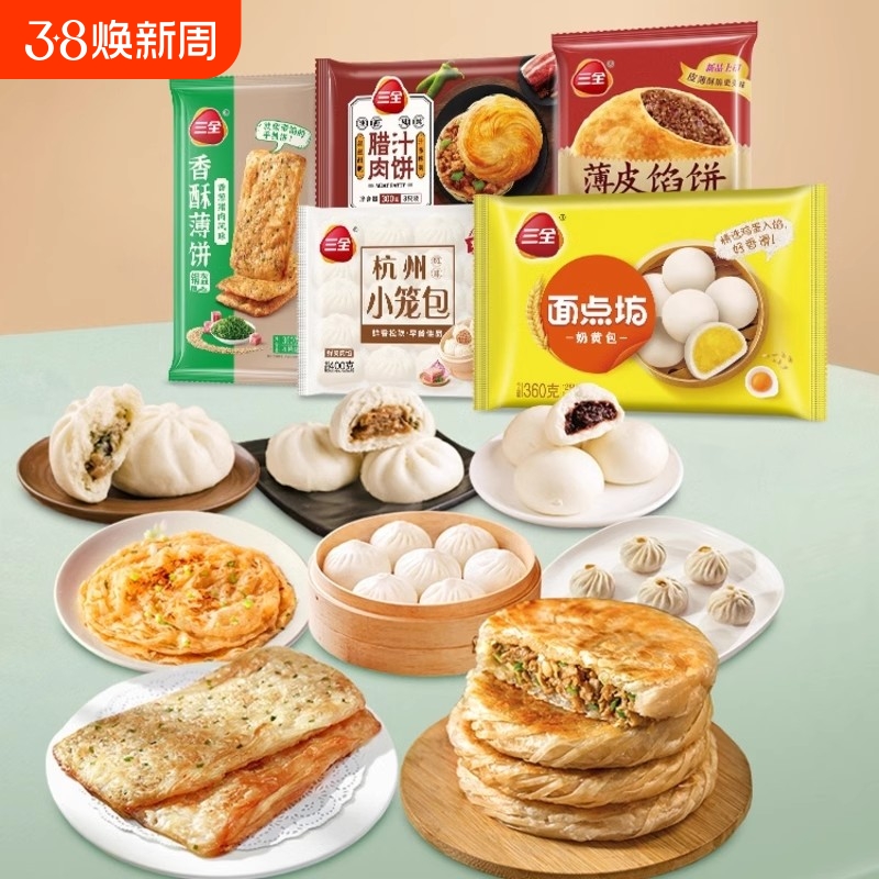 ¥47.39 任选8件!三全小笼包锅盔奶黄包早餐组合 48.39